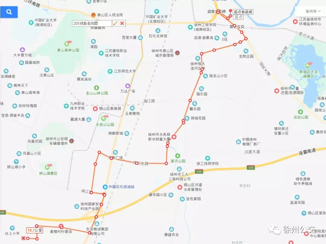 為滿足廣大市民出行需求,進(jìn)一步擴大徐州高新區(qū)和市區(qū)的交通線網(wǎng),促進(jìn)區(qū)域交通和諧發(fā)展,為更多的市民提供便捷的城市客運服務(wù),徐州公交開通了205路線,并于12月18日上午8:30分開始試運行。具體線路走向及停靠站點如下: