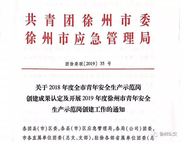 公司81路線榮獲徐州市 “青年安全生產(chǎn)示范崗”榮譽(yù)稱(chēng)號(hào)
