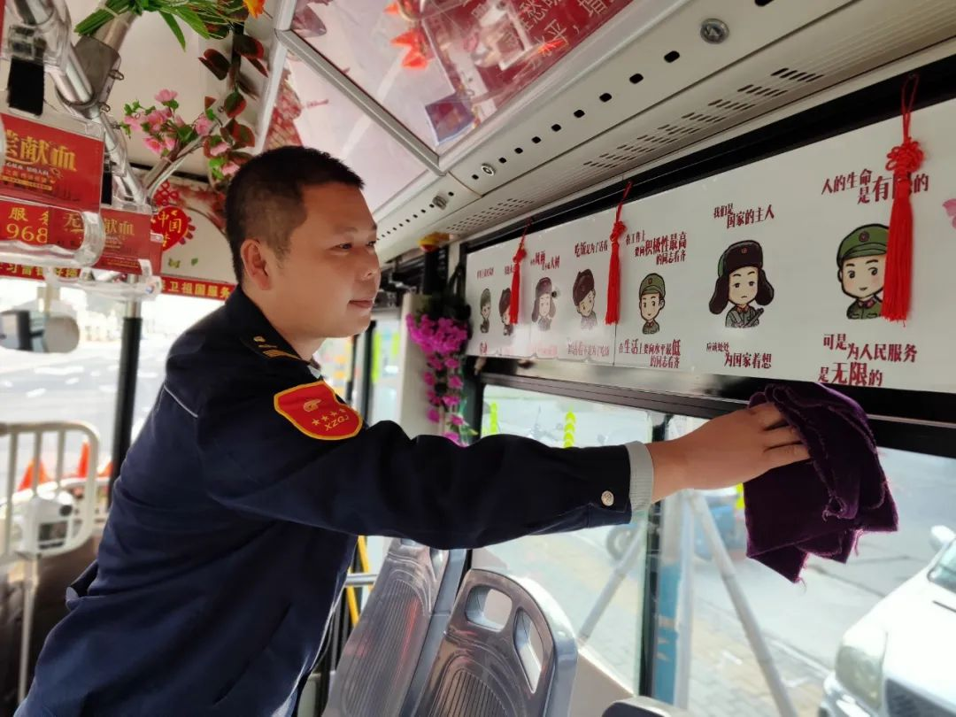 駕駛座上的王石龍雙手把住方向盤,安全平穩(wěn)駕駛著,每到一站,他都會(huì)仔細(xì)觀察乘客的上下車情況,并攙扶特需乘客坐到座位上,他用熱情的服務(wù)為乘客送去溫暖。走進(jìn)王石龍的車廂,紅色的主題格外引人矚目,扶手被用紅絲絨布套包裹得嚴(yán)嚴(yán)實(shí)實(shí),一個(gè)個(gè)的座位上整齊地放置著棉坐墊,車廂內(nèi)溫馨的感覺(jué)縈繞著乘客,感到冬日里格外的溫暖。他還自費(fèi)更新了紅色小人書,放置了醫(yī)藥箱、便民袋、針線包、速效救心丸、一次性雨衣等等,細(xì)微之處彰顯了王石龍對(duì)工作的用心和對(duì)崗位的熱愛(ài)。