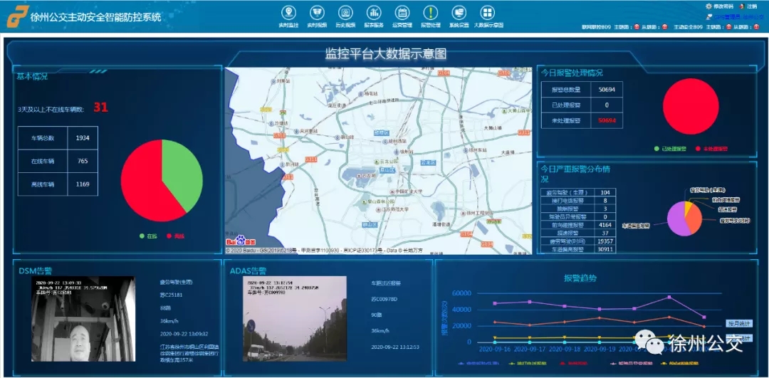 主動安全智能防控系統(tǒng)是一套保障行車安全的自動預(yù)警防控和監(jiān)管系統(tǒng),是以物聯(lián)網(wǎng)、云計算、大數(shù)據(jù)等技術(shù)為依托的綜合監(jiān)管平臺,秉承“以人為本”的安全管理理念,運(yùn)用最新的科技信息化手段,通過主動識別駕駛員抽煙、打電話、疲勞駕駛、前向跟車過近、頻繁變道、車輛超速等危險駕駛行為,及時進(jìn)行提醒干預(yù)。同時,通過車載視頻監(jiān)控的抓拍和錄像,實(shí)現(xiàn)事件取證,實(shí)現(xiàn)以疲勞駕駛干預(yù)、主動防控、聯(lián)網(wǎng)聯(lián)控、歷史軌跡與車輛定位以及車載視頻監(jiān)控系統(tǒng)為主導(dǎo)的“五位一體”的安全防控和預(yù)報警監(jiān)管機(jī)制,極大提升了公交車輛的主動安全防控和治安取證的總體水平。