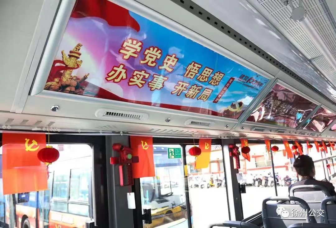 公交集團(tuán)推出的黨史學(xué)習(xí)教育主題車廂以公交車輛為載體,以黨史百年歷史瞬間為主線,對(duì)車廂內(nèi)的燈箱、扶手、欄桿、圍板等顯著位置進(jìn)行改造。公交車車廂內(nèi)掛滿鮮艷的紅旗、黨旗、中國結(jié),張貼黨史知識(shí)要點(diǎn),還制作了“傳承紅船精神”、“弘揚(yáng)井岡山精神”等習(xí)近平點(diǎn)贊的八個(gè)精神譜系海報(bào)……通過一幅幅主題鮮明、引人入勝的宣傳展板,把車廂裝扮成為流動(dòng)的黨史學(xué)習(xí)課堂,方便公交職工在工作間隙、廣大市民在乘車途中學(xué)習(xí)黨史知識(shí),重溫紅色記憶。紅色主題車廂亮相彭城,為營造濃厚的學(xué)習(xí)氛圍提供了良好平臺(tái)。