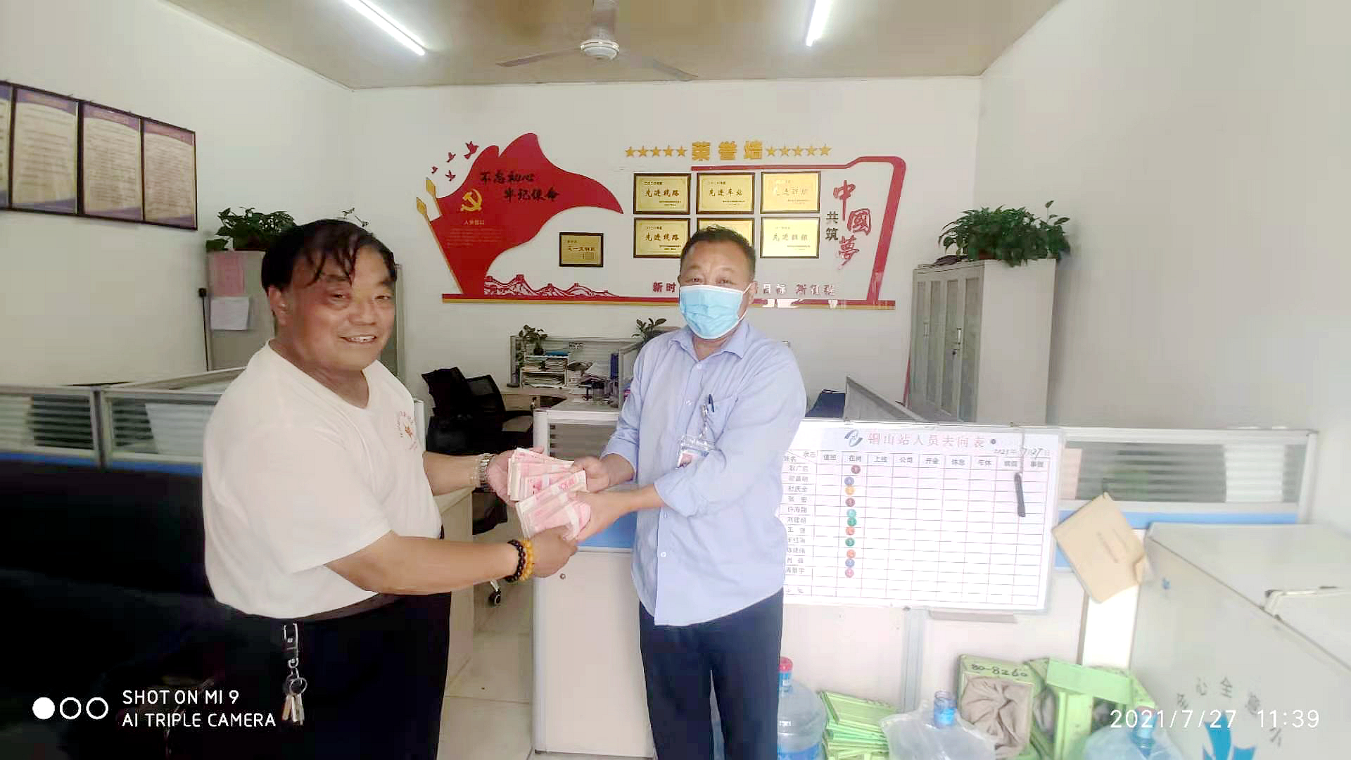 在調(diào)取車輛監(jiān)控錄像后發(fā)現(xiàn),遺失布包的乘客從張集上車,在汽車南站下車時將紅色布包忘在了車上。就在耿站長準(zhǔn)備撥打110報警電話求助時,一男子急匆匆地來到辦公室,稱他的包遺忘在83路公交車上,里面有好多現(xiàn)金,請車站工作人員幫忙查一下。在通過監(jiān)控比對、身份證驗證及失主敘述后,耿長拿出色布包請張先生確認(rèn),張先生非常激動,連聲道謝,稱贊公交駕駛員拾金不昧的精神。