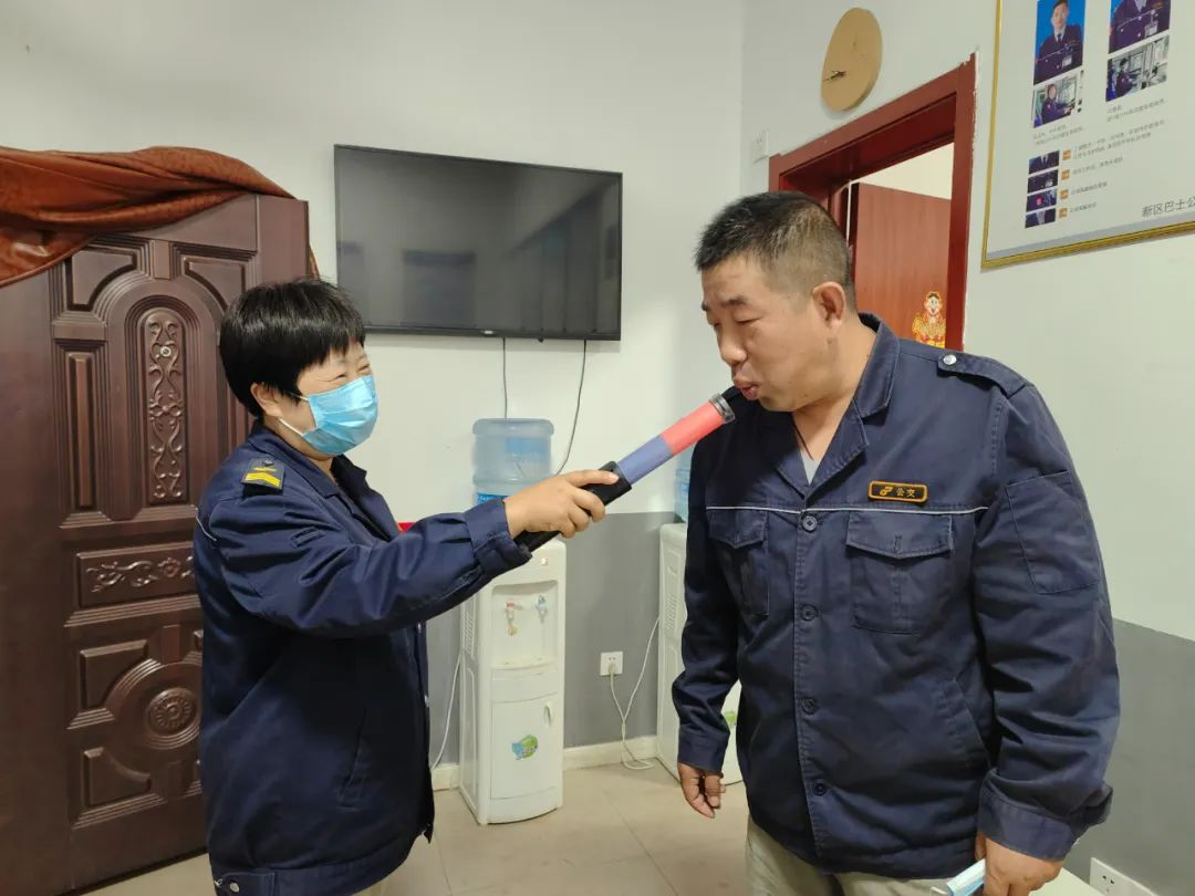天還未亮,19路調度室里燈火通明,調度員黃靜已經打開電腦開始了一天的工作,駕駛員陸續(xù)到達,車隊運管員鄒晶一邊叮囑著駕駛員安全注意事項,一邊對其進行酒精測試,一切井井有條,忙而不亂。首班車駕駛員紀彤仔細檢查車況、消毒、通風等情況,車上、車下絲毫不敢疏忽,做好出車前的準備。