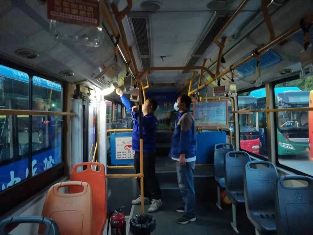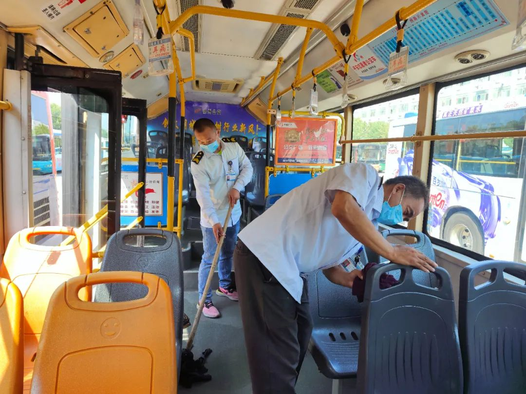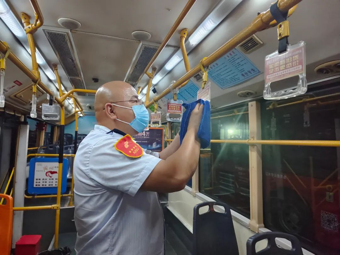 氣溫逐漸上升,陸續(xù)到了中午交接班時間,上、下午班駕駛員一起打掃車輛衛(wèi)生,并為車輛消毒,地板、扶手、座椅,不放過任何一處死角,只為給市民乘客提供更安全、舒適的乘車環(huán)境。