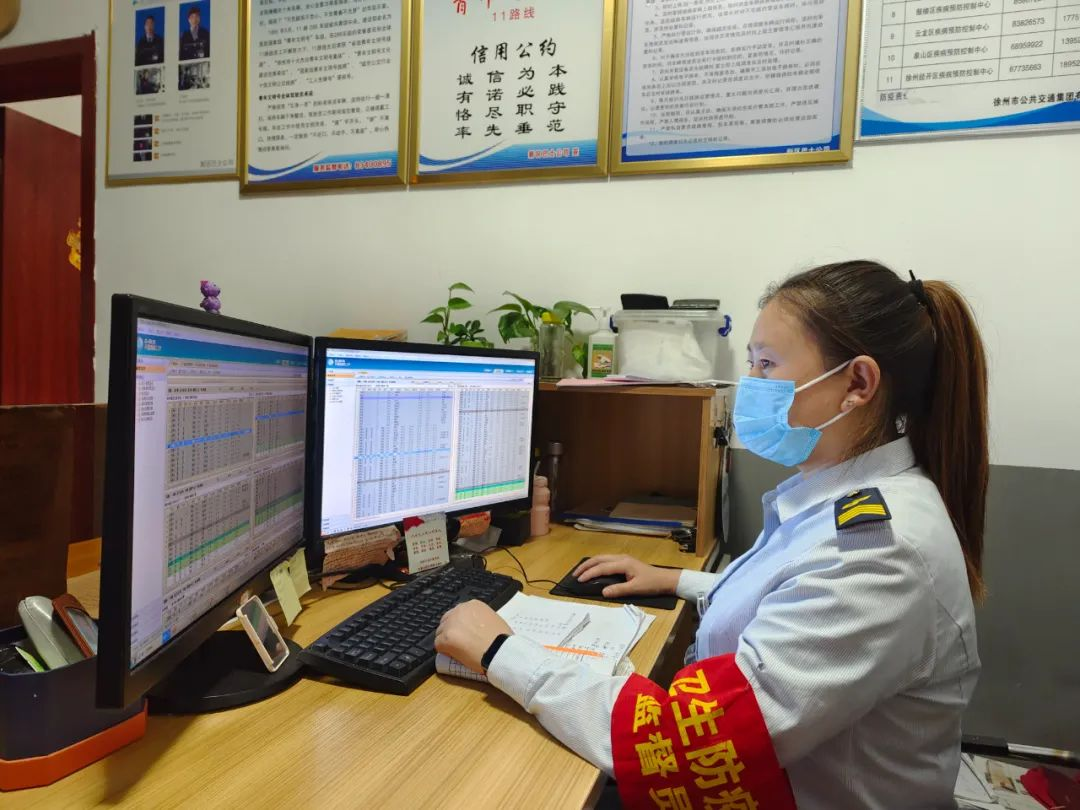 公交車陸續(xù)回場收車,隨著最后一輛公交車緩緩駛出場站,調度員蘇玉潔還在電腦前核實各條線路全天車次,檢查當日運營公交車數(shù)據的準確性,核查結束后,她關閉電腦,又仔細地切斷了各處電源,反復確認一切工作無誤后才踏出調度室的門。