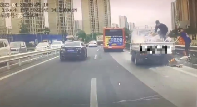 4月21日中午,608路4名駕駛員石守軍、孫晉旭、郝科軍、郝允明駕駛著他們各自的車輛前往火花加氣站進行加注燃料,就在返回的途中,忽然看到前方路邊白煙滾滾,當(dāng)距離再靠近一點時才發(fā)現(xiàn)竟然是一輛小型貨車車廂著火產(chǎn)生的陣陣煙霧,且已經(jīng)有幾個箱子開始接連燃燒,小貨車駕駛員手里只有一瓶礦泉水,面對火勢即將控制不住,這僅有的一瓶水無疑是杯水車薪,無奈之下,貨車司機只能慢慢地將著火的紙箱搬下車廂。